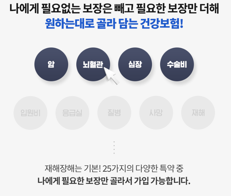 - 라이나생명 : 필요한 보장만 골라 맞춤설계가 가능하며 13가지 신체부위에 대한 질병장해가 특약 가입 시 반복보장이 가능합니다.