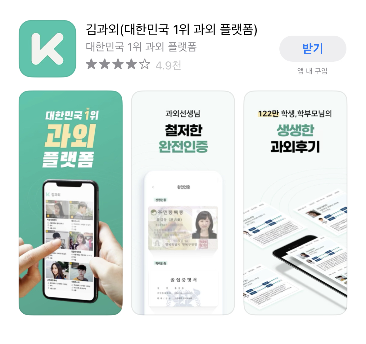먼저 스마트폰에서 김과외어플을 검색 후 설치합니다.