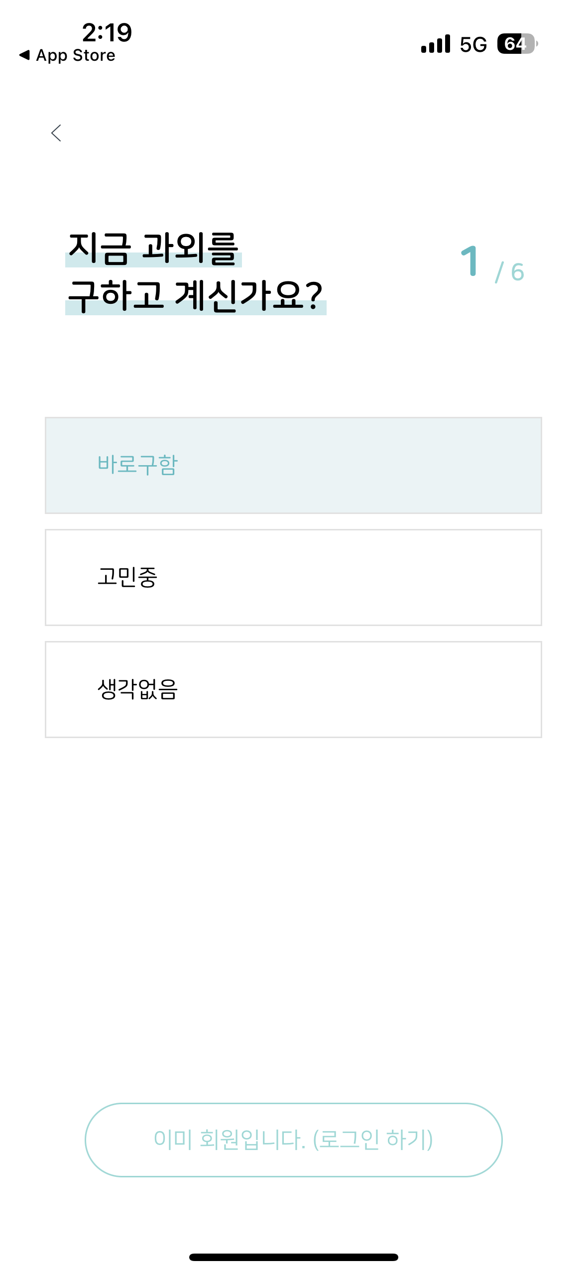 저는 학부모로 한번 선택해 보았습니다. 학부모를 선택하고 지금 바로 구인을 할 것인지, 둘러보기 위함인지 또는 생각 없는지 자신의 상황에 맞는 항목을 선택하면 됩니다.